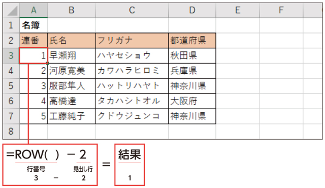 Excel時短術 仕事に効くrow関数の使い方 行番号を調べる 日経クロストレンド