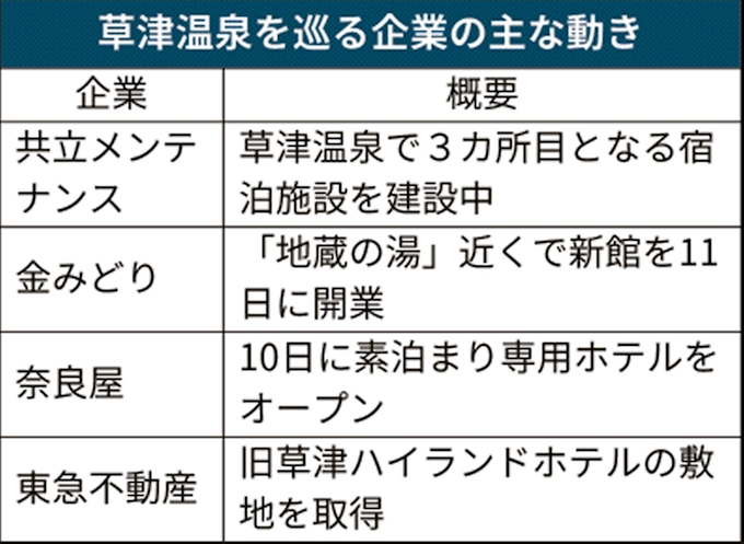 草津温泉に宿泊施設が続々 景観整備で若者が増加 日本経済新聞